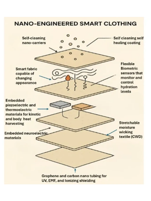 - “Engineering for Life,” what is it? Radiation-blocking Nano-clothing, self healing, cleaning, app adjusted, the fusion of science + lifestyle. What if your clothes could heal themselves, auto clean, be reshaped by an app, shield you from radiation, and harvest energy?